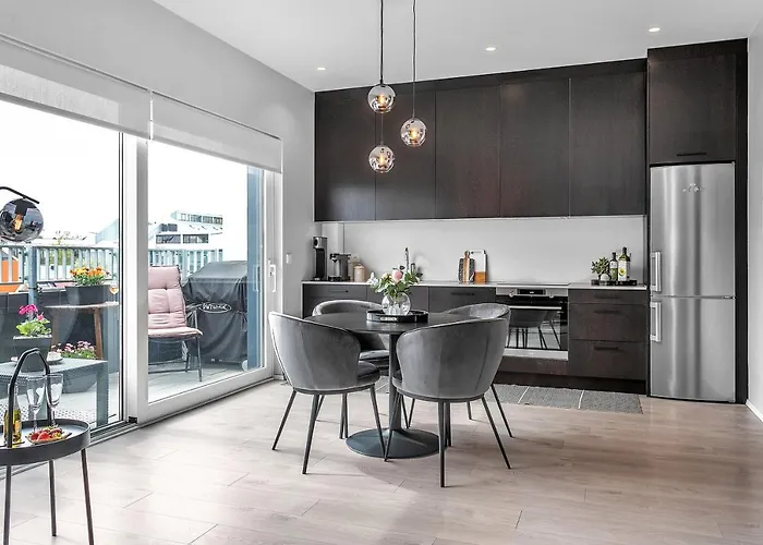 Villa est à Reykjavik, non loin des Seltjarnarnes. Le bâtiment est situé à 4 km du centre de Reykjavik.